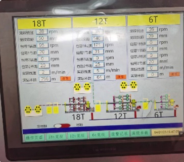 | 테이크업 터치스크린을 통해 직접 디지털 설정이 가능한 이중 휠 테이크업이 사용됩니다. 스트랜드 피치는 무제한입니다. | | |